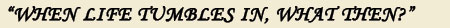 Life does tumble in. We are not always prepared to deal with the harshness of losses. There is at first a great disbelief that this is happening and to you. You who were so sure that you had it all under control.